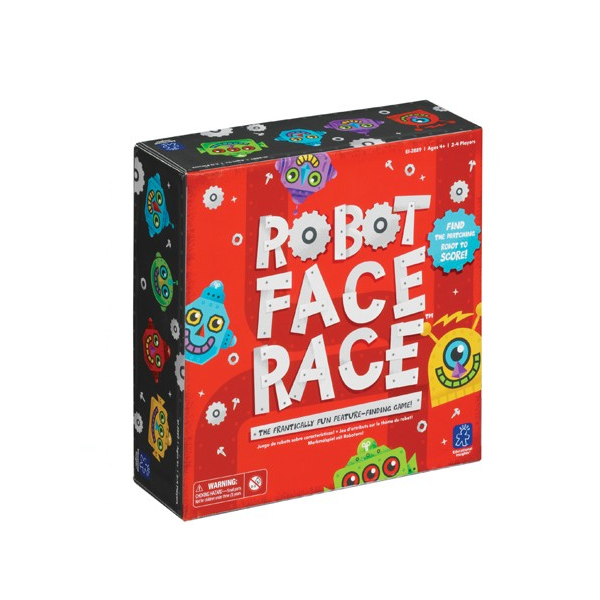 Frenético juego de búsqueda de características que promueve el reconocimiento de atributos, la observación y la percepción visual. Agita el robot aleatorio para mostrar una combinación de color facial única, busca en la pizarra para encontrar la coincidencia ¡Primero el robot y recolecta una ficha para cada robot que encuentres! ¡El primero en recoger cinco fichas gana! Para 2 a 4 jugadores El tablero de juego mide 40 cm. cuadrados.
