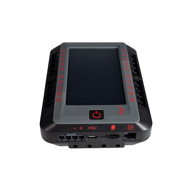 Otras características: incluye pantalla táctil a todo color de 4 pulg. - El panel proporciona diagnósticos en tiempo real - 21 puertos inteligentes - 8 puertos de 3 hilos para sensores analógicos y digitales - Descarga de programas de forma inalámbrica - Programable con VEX Coding Studio.